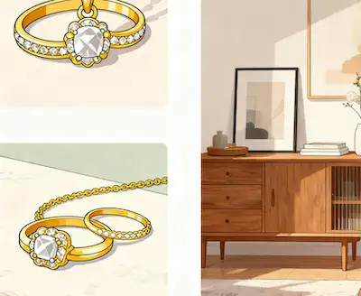From jewelry close-ups to furniture shots, the AI keeps lighting and texture realistic — so everything looks shot in the same studio.